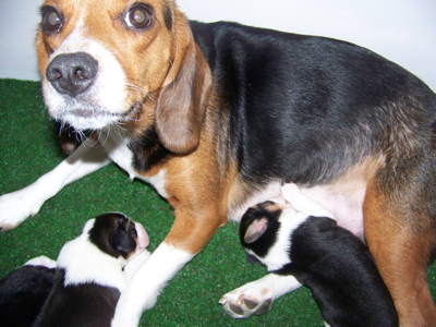 Tomorrow they’ll take the special “one week old” photos of my babies. I’m not feeling very photogenic though. My body has gotten quite flabby from all the puppies sucking and tugging on me. I’ll play ball with Andi later and hope to get back in shape. It’s not easy being a girl.
